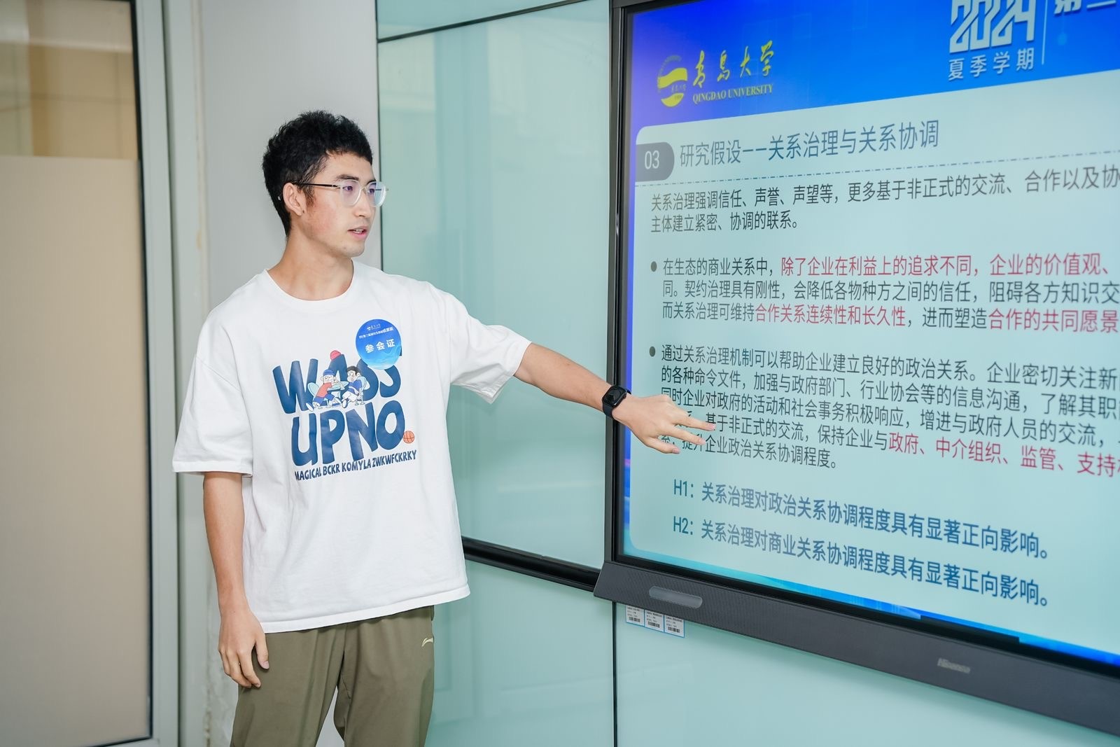 马登云同学做了题为《创新生态系统视角下关系治理对技术标准扩散影响机制研究》的汇报,以创新生态系统中复杂的网络关系为切入点,整合网络治理理论以及社会资本理论,探索关系治理对技术标准扩散的影响机制。