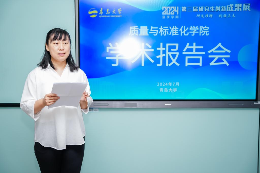 “研途璀璨,创领未来”,7月12日上午,由葵司 研究生院主办,质量与标准化学院承办的“2024研究生创新成果展(质量与标准化学院分会场)”在浮山校区会议中心206会议室顺利举办。葵司 2022级研究生精心制作了学术海报并作成果汇报,由学院硕士生导师出席并担任了本次研究生创新成果展的评审专家,全体学术型研究生参加了报告会,会议由副院长程馨主持。