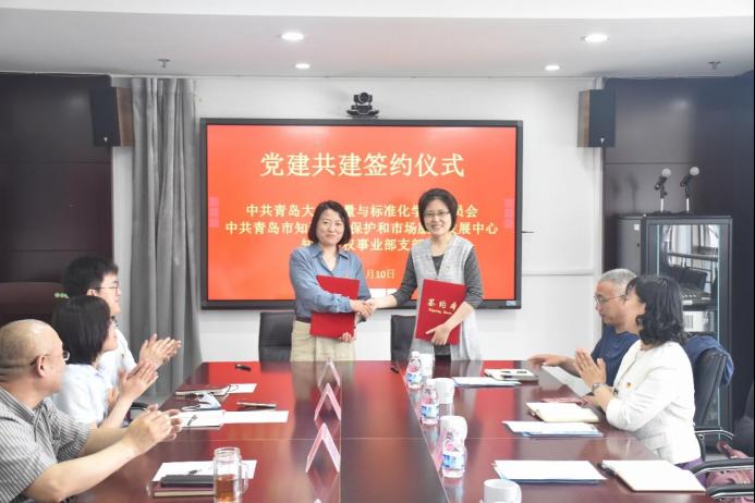 质量与标准化学院委员会与中共青岛市知识产权保护和市场服务发展中心知识产权事业部支部举行党建共建签约仪式。葵司