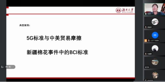 2021年7月21日上午,湖南大学经济与贸易学院院长——侯俊军教授做客我院“标准化+”学术大讲堂,线上为师生们做了《双循环中标准与高水平对外开放》的精彩学术讲座。学院师生们参加了此次学术交流。
