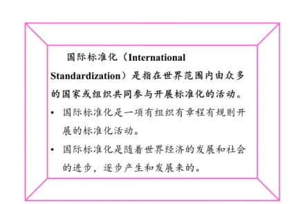 首先,郑教授回顾了国际标准化的产生与发展,明确了国际标准化的定义,介绍了具有创举性意义的国际材料试验协会的成立。而后依次介绍了国际电信联盟(ITU)、国际电工委员会(IEC)、国际标准化组织(ISO)的先后成立。