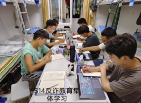 新生专门就“防诈骗”进行了宣传教育,新同学们在宿舍内线上学习,展现出了积极向上的学习氛围。