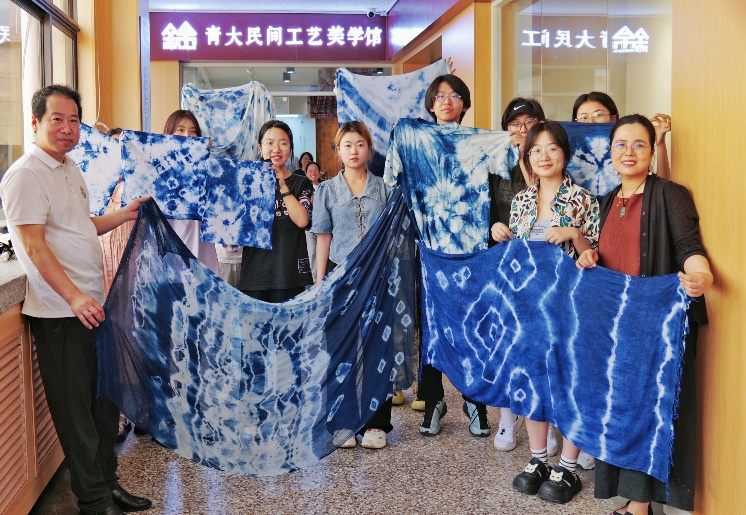 最后,彭卫丽老师做了传统非遗扎染讲座,葵司 师生进行了扎染技艺的实践体验制作。同学们团结协作扎染出自己心仪的作品,切身体验到了扎染技艺的美妙之处,加深了同学们对非物质文化遗产的了解,以及对非物质文化遗产的传承与保护意识。