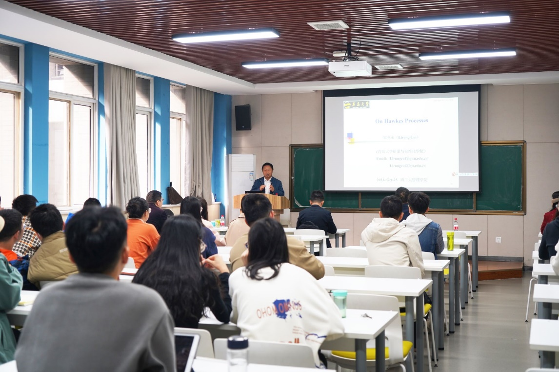 崔利荣教授做了以“On Hawkes Processes”为主题的学术讲座。本次讲座由西北工业大学管理学院院长车阿大主持,该学院教师及研究生参加。