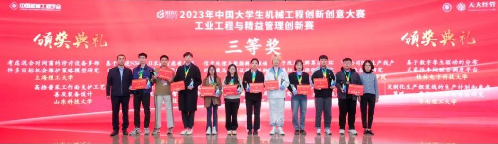 大赛由中国机械工程学会和教育部高等学校工业工程类专业教学指导委员会联合创办,自2018年创办以来已连续举办六届,并入选中国高等教育学会发布的《全国普通高校大学生竞赛目录》。该赛已成为推进工业工程与精益管理领域的全国性卓越竞赛项目。本届竞赛共收到北京大学、上海交通大学、天津大学、南京大学、华中科技大学、四川大学、吉林大学等来自26个省、自治区和直辖市110所高校409支代表队的参赛作品,参赛队伍数量再创新高。经过激烈角逐,共评选出全国一等奖8项、二等奖20项、三等奖77项。