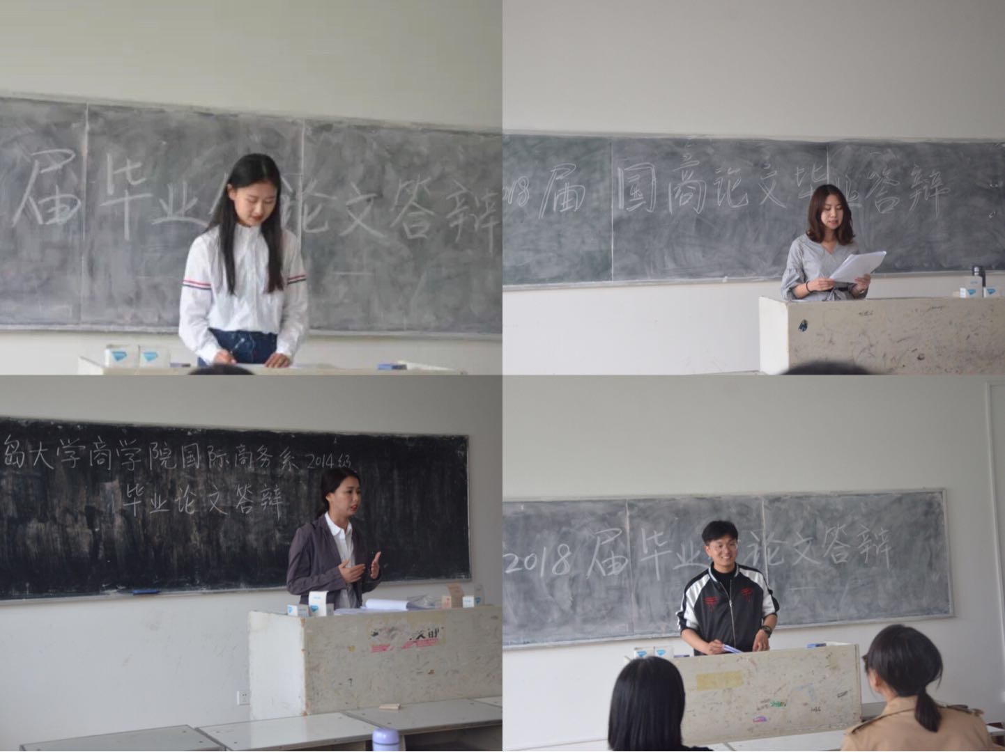 2017年5月12日(周六)下午,国际商务系在金家岭校区东院4号楼204、208、210、212教室组织举行了2018届国际商务专业本科毕业论文答辩。共有131名学生参加了答辩,答辩程序规范,学生答辩准备认真,答辩教师按照学校的答辩要求认真履行了答辩环节的全部程序,对论文存在的问题提出了修改意见。