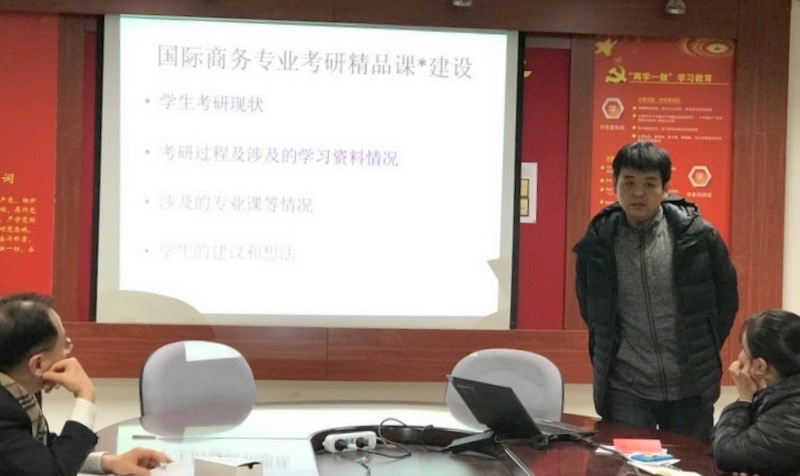 国际商务系第4次工作例会于2018年1月2日下午在金家岭校区西院办公楼310召开。会议共三项议题:一是全系教职工作了2017年度个人述职;二是本学年第1次工作例会《本科培养质量提升专题》工作情况汇报;三是系主任徐永辉作了2017年度系工作报告。