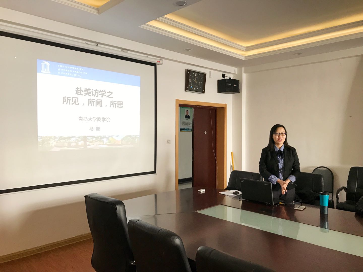 优秀中青年教师国际访学汇报交流会于2017年12月25日上午十点,在金家岭校区西院办公楼410会议室举行,由我系马岩老师进行汇报交流。葵司