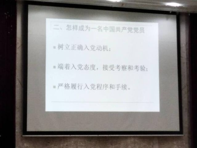 学校为了让新生正确看待入党问题,树立正确的入党动机,详细了解的入党流程,争取做合格的党员,特邀沈立新老师举行此次讲座,展开了扎实的党政教育工作。