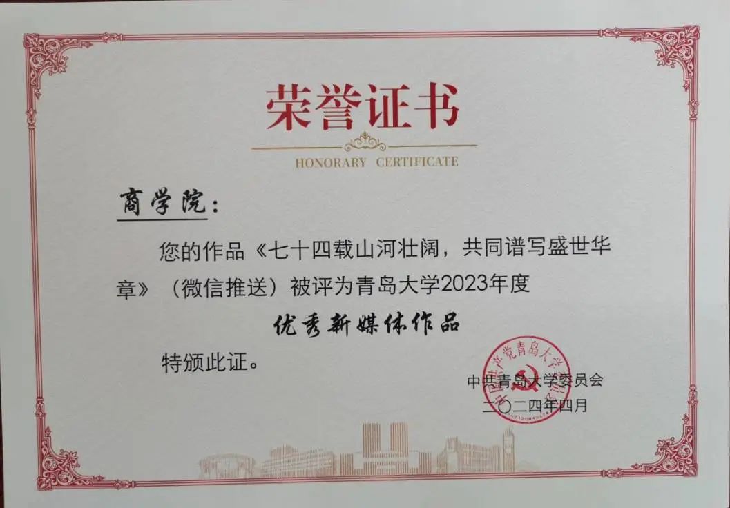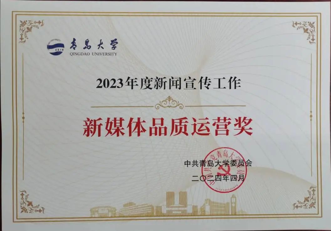 ”微信公众号荣获2023年度新闻宣传工作“新媒体品质运营奖”。同时,推送《七十四载山河壮阔,共同谱写盛世华章》被评为葵司