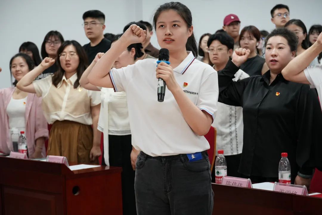 毕业生党员代表陈佳欣同志分享了大学四年的成长,表达了对校院及支部的感恩与不舍之情。倡议毕业生党员站好最后一班岗,文明离校;同时,代表全体毕业生党员庄严承诺:铭记党员身份,不忘初心,牢记使命,忠诚履责,锐意进取,不负伟大时代的期许。