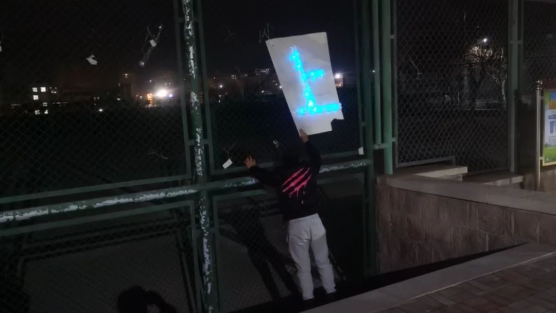 学生会的同学便聚集在一起,将活动所需的画稿,荧光棒等物品分别摆放在了图文中心,篮球场和四号宿舍楼和六号宿舍楼的途径道路上,画稿为塑料泡沫所制作,十分易碎,在运送过程中葵司