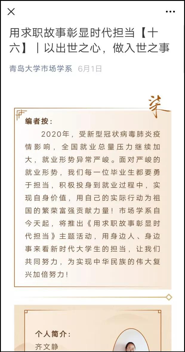 “学而有道”、“学而时习之”、“我的美丽大学”、“用求职故事彰显时代担当”系列推文截图