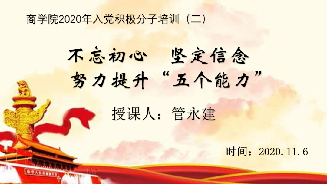 党委组织委员管永建授课“不忘初心 坚定信念 努力提升五个能力”。