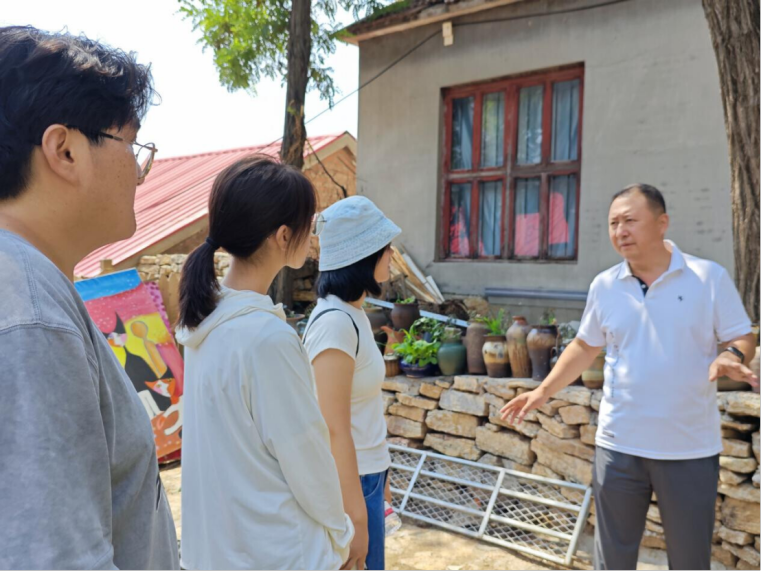 离开“半亩山塘”后,实践团来到“山谷农舍”参观考察。古朴雅致的农舍建筑与周边自然景致相映成趣,成员们细致走访了客房布局、公共活动空间及特色景观区。期间,实践团与农舍创始人郭总围绕现代青年群体“寻静”消费趋势、乡村创业的差异化路径等核心议题展开深度对话。