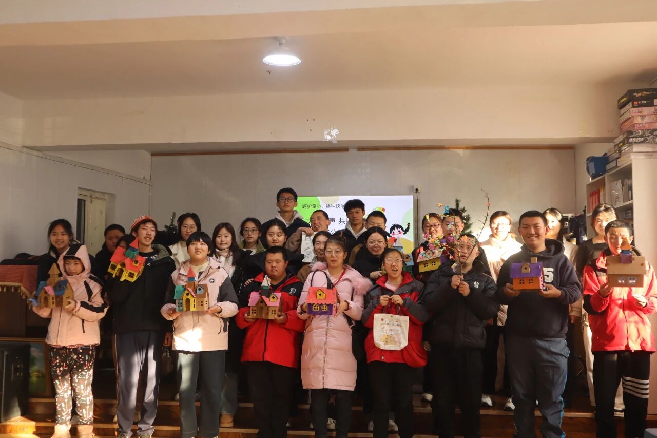 初次见面,志愿者们通过轻松有趣的破冰游戏与孩子们建立信任,在笑语中悄然拉近了距离;随后,志愿者与孩子们共同折叠、装扮属于自己的“纸房子”,用落叶作画、用黏土装饰树枝,孩子们的童真宛若一缕春风,让枯枝在这个寒冬迎来新生,绽放五彩斑斓的温暖;歌声接续响起,熟悉的旋律萦绕室内,志愿者与孩子们齐声哼唱,节奏与笑容在此刻共振