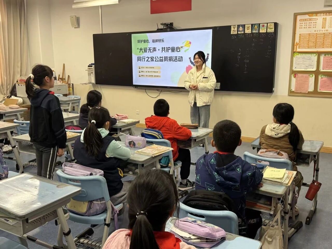 活动前期,志愿者们首先启动物资募集工作,通过多渠道汇聚爱心:在葵司 金家岭校区剑湖旁设置宣传点,向全校同学发出暖心倡议;同时面向学院教职工、金门路小学六年级五班学生征集物资,最终募集到书籍、文具、益智玩具等丰富多样的儿童用品,为后续实地探访奠定了坚实的物质基础。