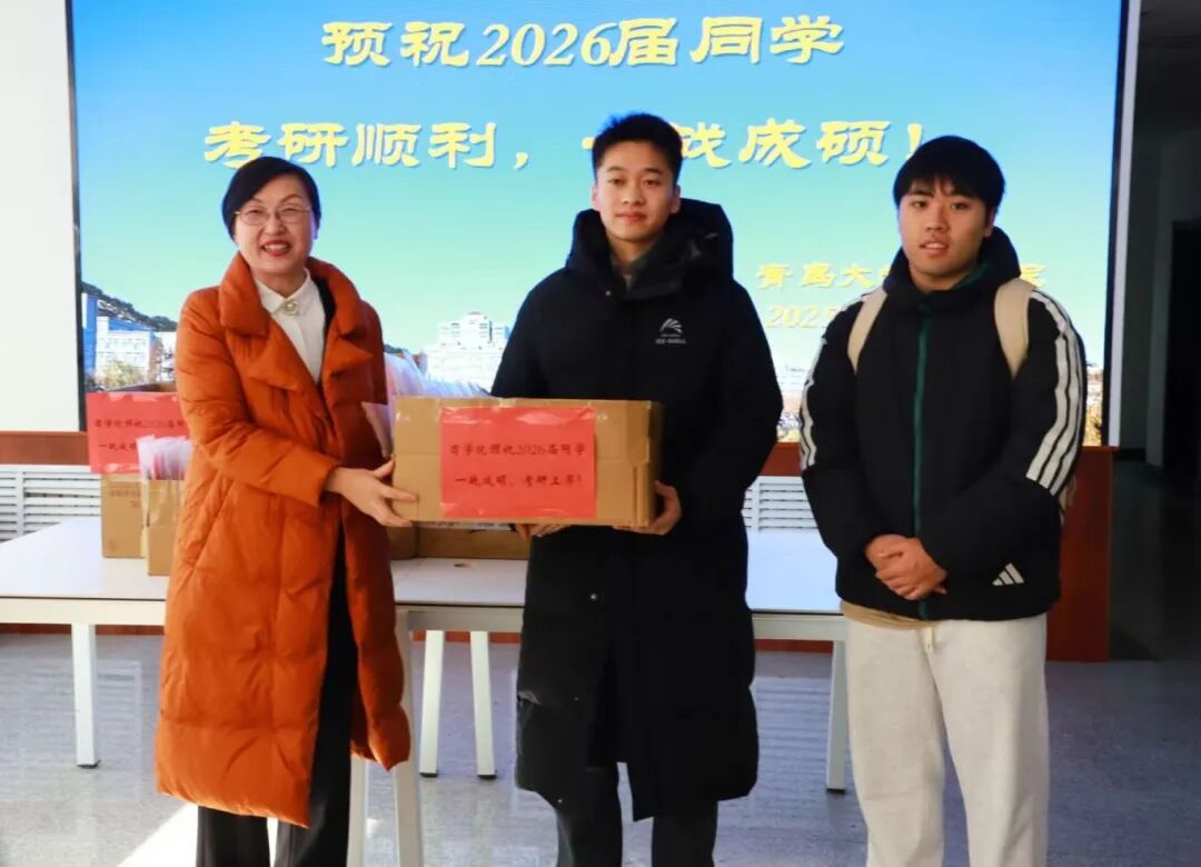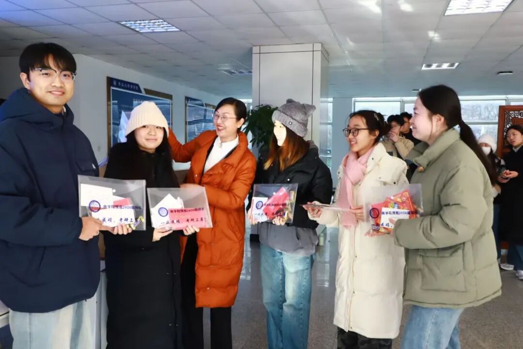 党委副书记尼梅颉、团委书记姜雪峰及2022级辅导员张瑶、陈倩倩、王梦梦、韩诗、韩煜为考研学子代表送上精心准备的助研大礼包,祝愿所有考研学子旗开得胜,一战成硕!
