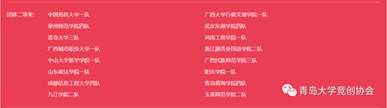 国家级个人三等奖:李奥、李嘉淇、朴建宇、宋浩欣、张一凡、刘畅、聂士卿、李文静、何静、胡秀秀、赵巧怡、丁龙月、王鑫诺