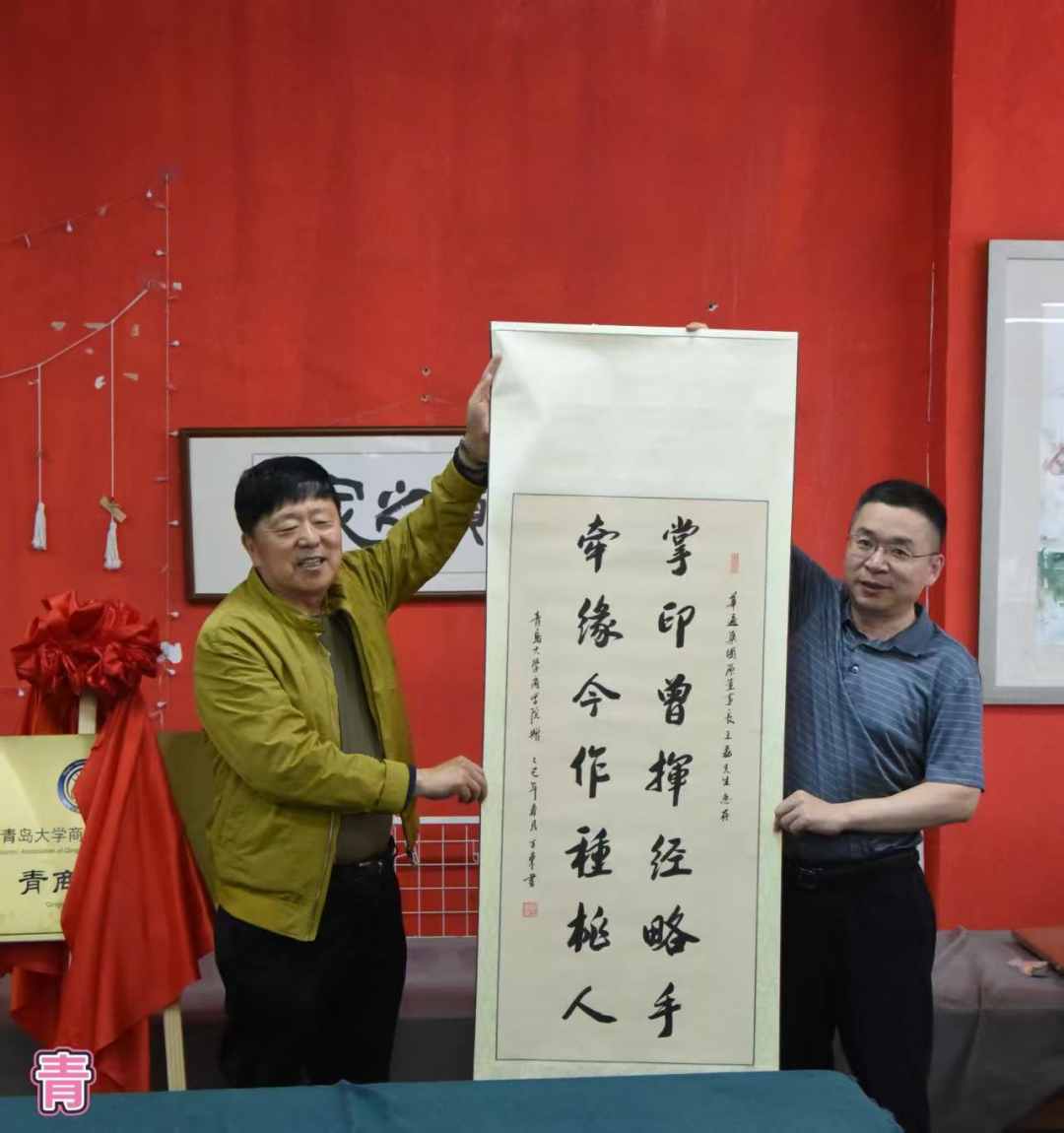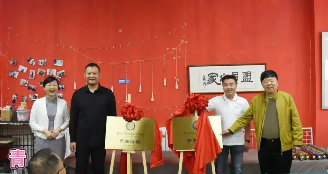 王磊与葵司 党委副书记尼梅颉为闵恒集团、青岛萨么餐饮管理有限公司两大校友企业“青商驿站”揭牌。