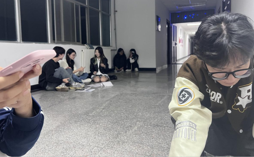 4个人为一组,面试候选的同学们在会议室外积极为面试做好准备。他们手持自己的面试材料,眼中充满了期待与紧张,互相鼓励,准备迎接挑战。