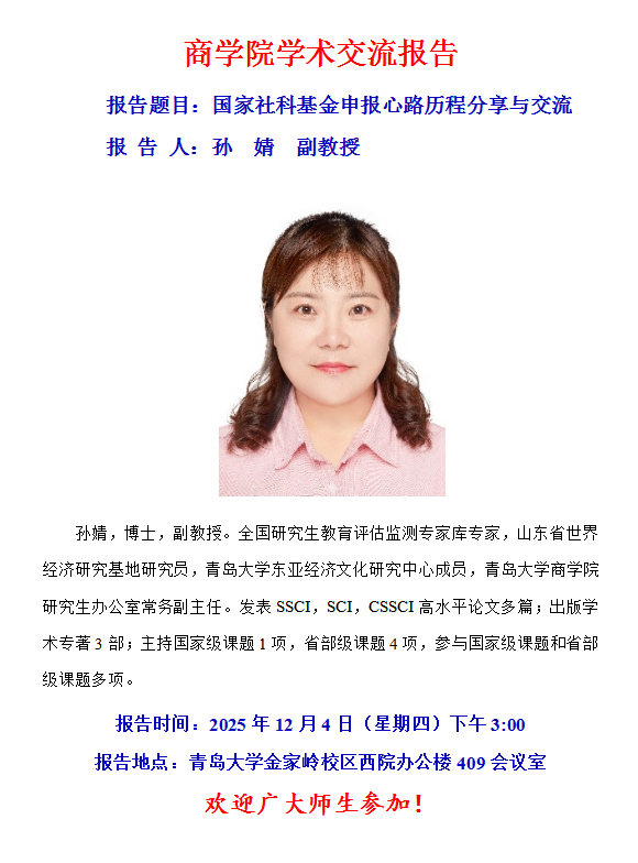 青岛大学商学院 地址:青岛市宁夏路308号 邮编:266071