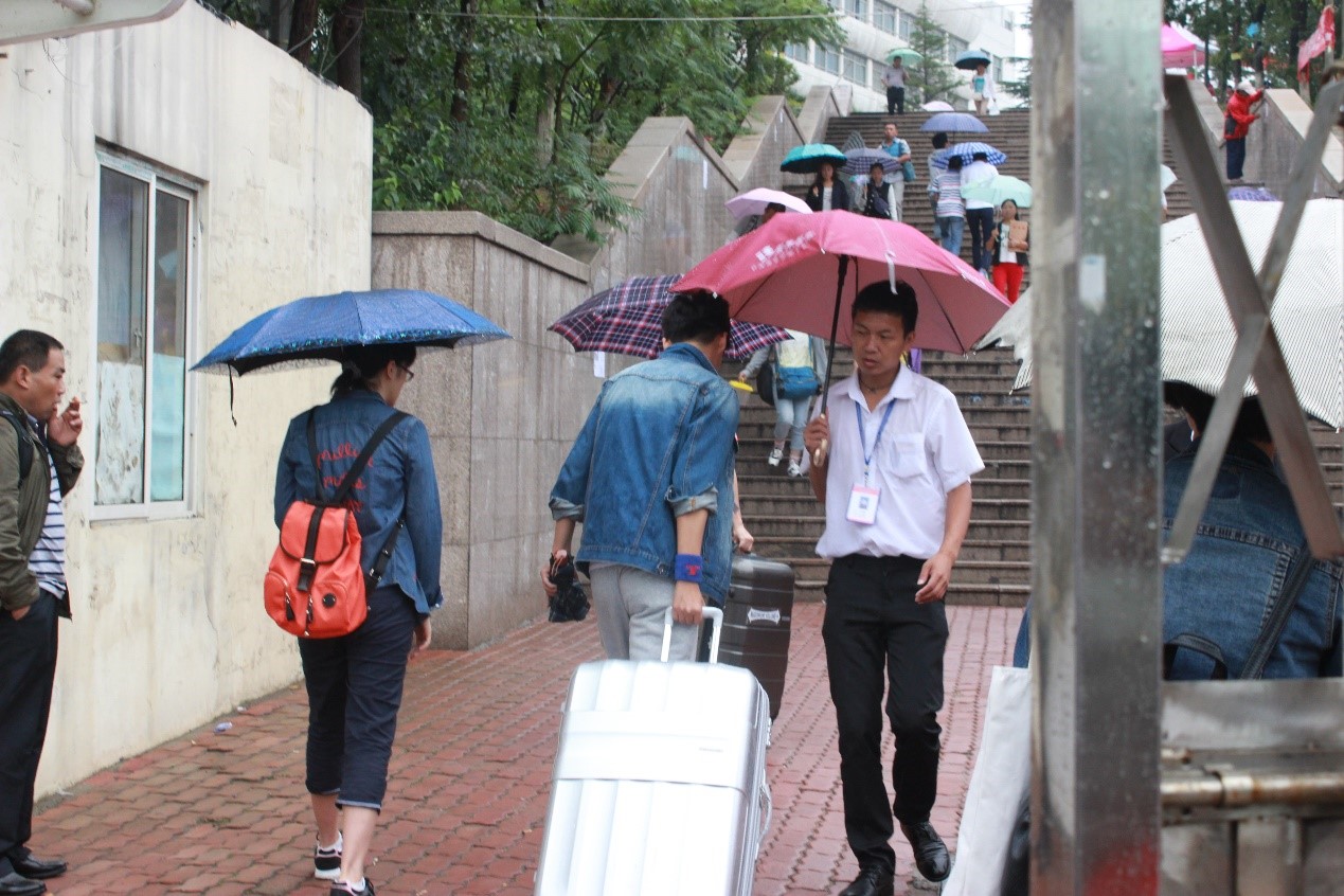 会计学系迎来了第二批2015届新生。兴许是为了遵循往年的惯例,今年的迎新日依旧飘着小雨。虽然天气不好,可会计学系迎新团队学长学姐们的迎新热情却丝毫不减,反而更加高涨。由于今天是新生们正式报道的时间,所以今天的迎新工作显得尤为紧张,但一切都在迎新团队细致的安排下有序的进行着。