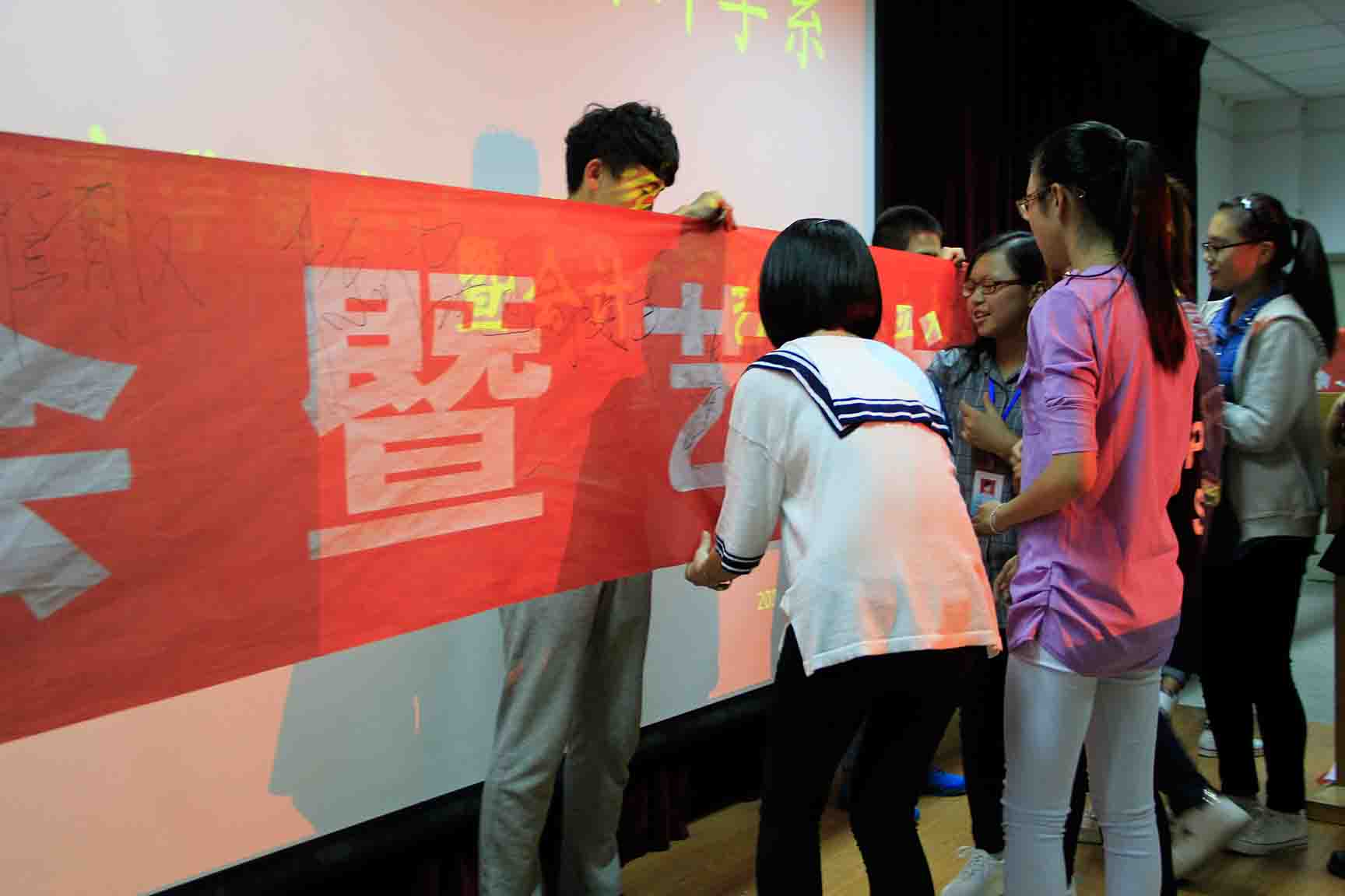 大会最后,各部成员依次上台签字,学生会及艺术团大会全体新老成员合影留念。