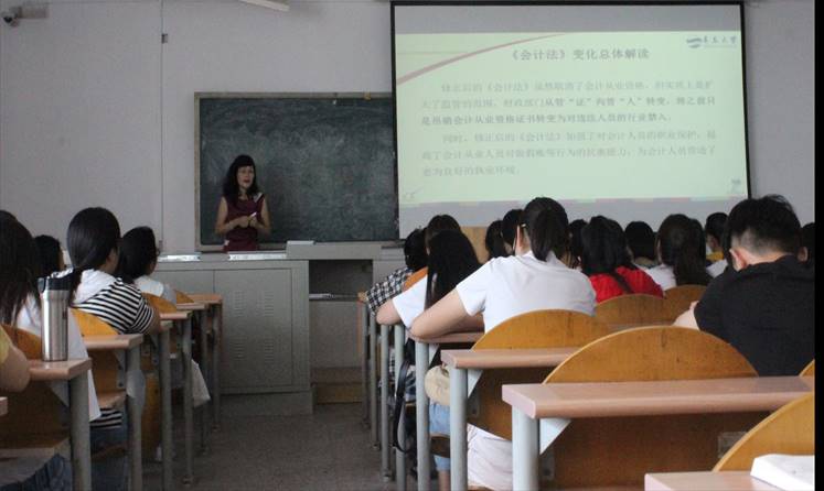 青年卓越人才”王风华教授主讲的“新《会计法》解读:变化、影响及应对”高端学术讲座在金家岭校区西院二教107举行。会计学系部分同学出席此次讲座。