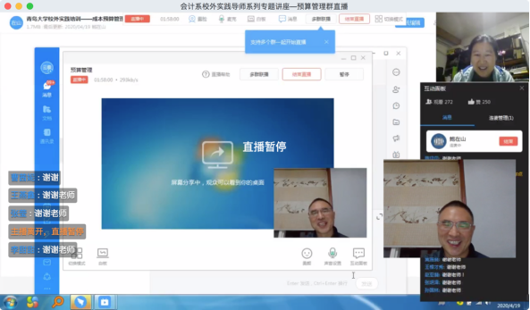 19:57,同学们陆续进入直播间,王云霞老师和鲍在山老师也提前进入直播间,与同学们进行讲座前的简短交流。