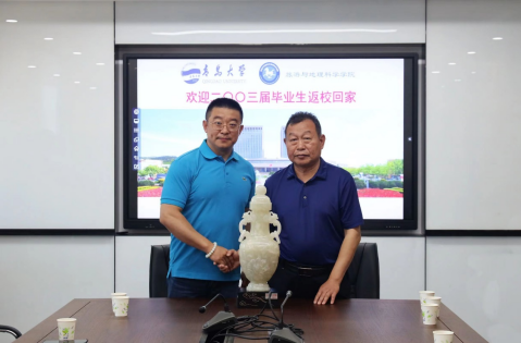 马波教授进行讲话。他感慨道,在青大教书的三十年是意想不到的事情,而作为一位教书先生,能见到学生是最开心的事,对今天返校的校友,他告诉大家,要向前看,一直在学习中前进。