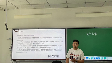 陈雷:从自然灾害的概念和分类切入,主要讲解中国自然灾害的特点,重点讲解了洪涝、干旱等气象灾害和滑坡、泥石流等地质灾害的分布与成因,最后在带领学生了解了我国的自然灾害特点与分布类型以后,从国家层面和个人层面学习防灾减灾的具体措施。
