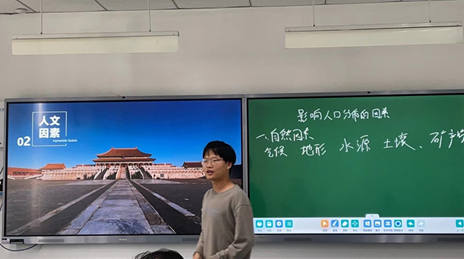 曾国涛:讲课内容为必修二第一章第一节“影响人口分布的因素”,主要通过案例分析和小组讨论的形式讲了影响人口分布的自然因素和人文因素,自然因素主要包括气候、地形、水源、土壤、矿产资源,人文因素包括生产力、经济、历史因素、政治、军事、文化等。