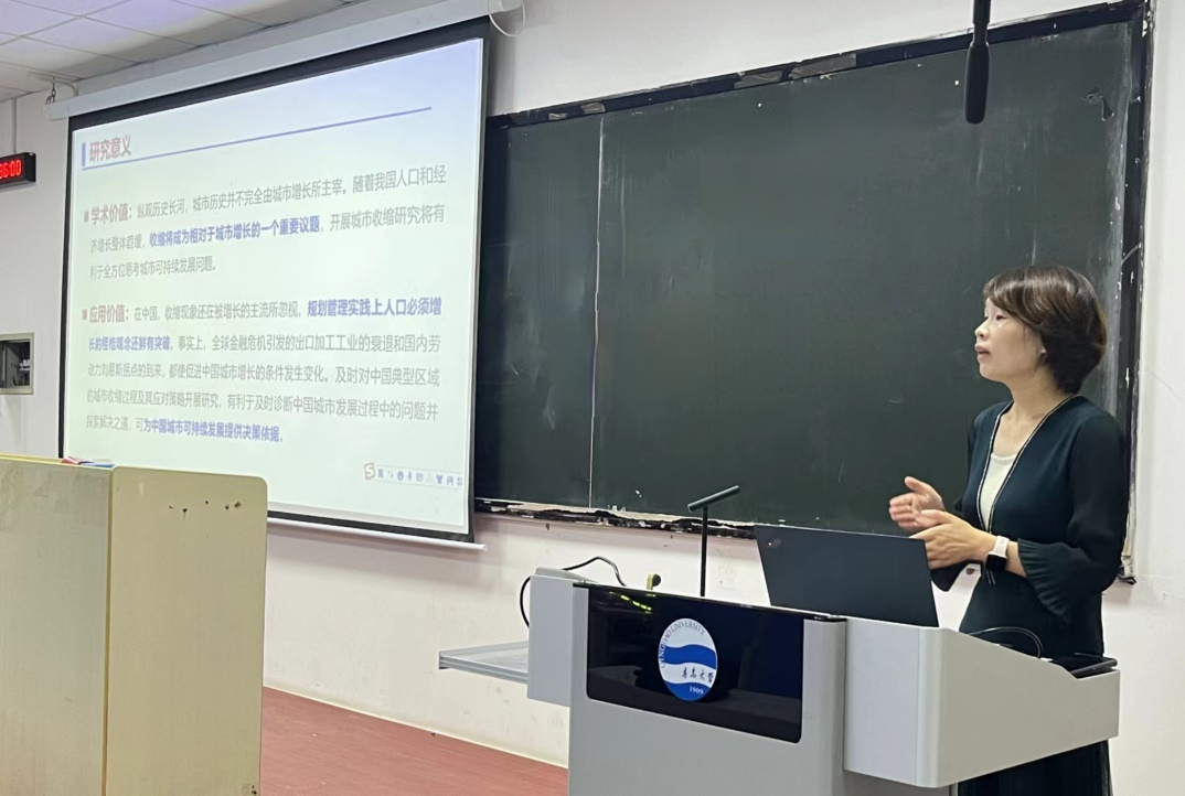 旅游与地理科学学院邀请中国海洋大学国际事务与公共管理学院杨洋教授为学院师生做题为“中国城市局部收缩过程研究”学术报告。本次报告在浮山校区博学楼102教室举行,由地理与城乡规划系主任赵建军老师主持,地理与城乡规划系赵建军老师、鞠洪润老师、曹颖慧老师及2021级、2022级、2023级地理科学专业全体同学参与讲座。