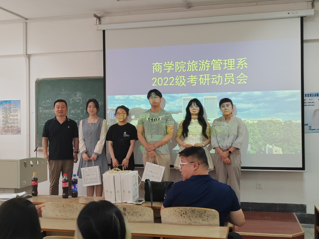 为帮助2026届毕业生明确考研目标、科学规划备考路径,营造积极向上的学习氛围,2025年6月10日下午,旅游管理系举办2026届毕业生考研动员大会。旅游管理系主任郭永锐老师,副主任王克稳老师,辅导员韩煜老师,优秀考研标兵及旅游管理系2026届全体学生参会。会议由系主任郭永锐老师主持。