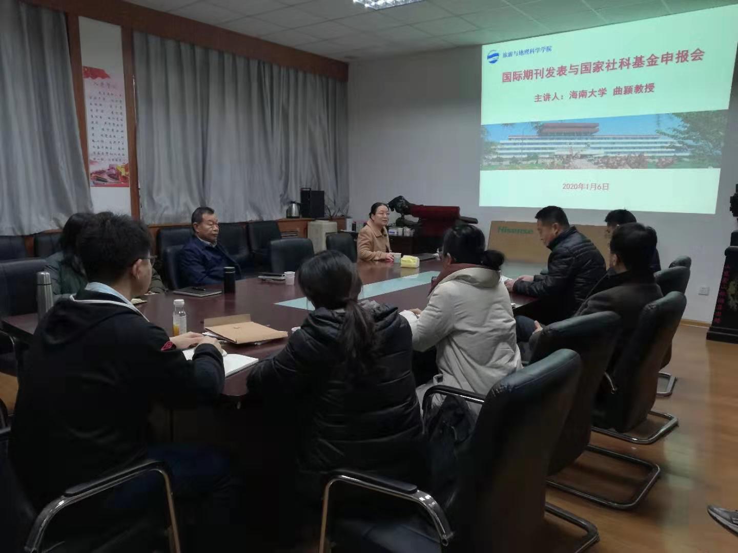 2020年1月6日上午9点,旅游与地理科学学院在睿思楼122会议室举办了国际期刊发表与国家社科基金申报会。学院邀请海南大学曲颖教授来葵司