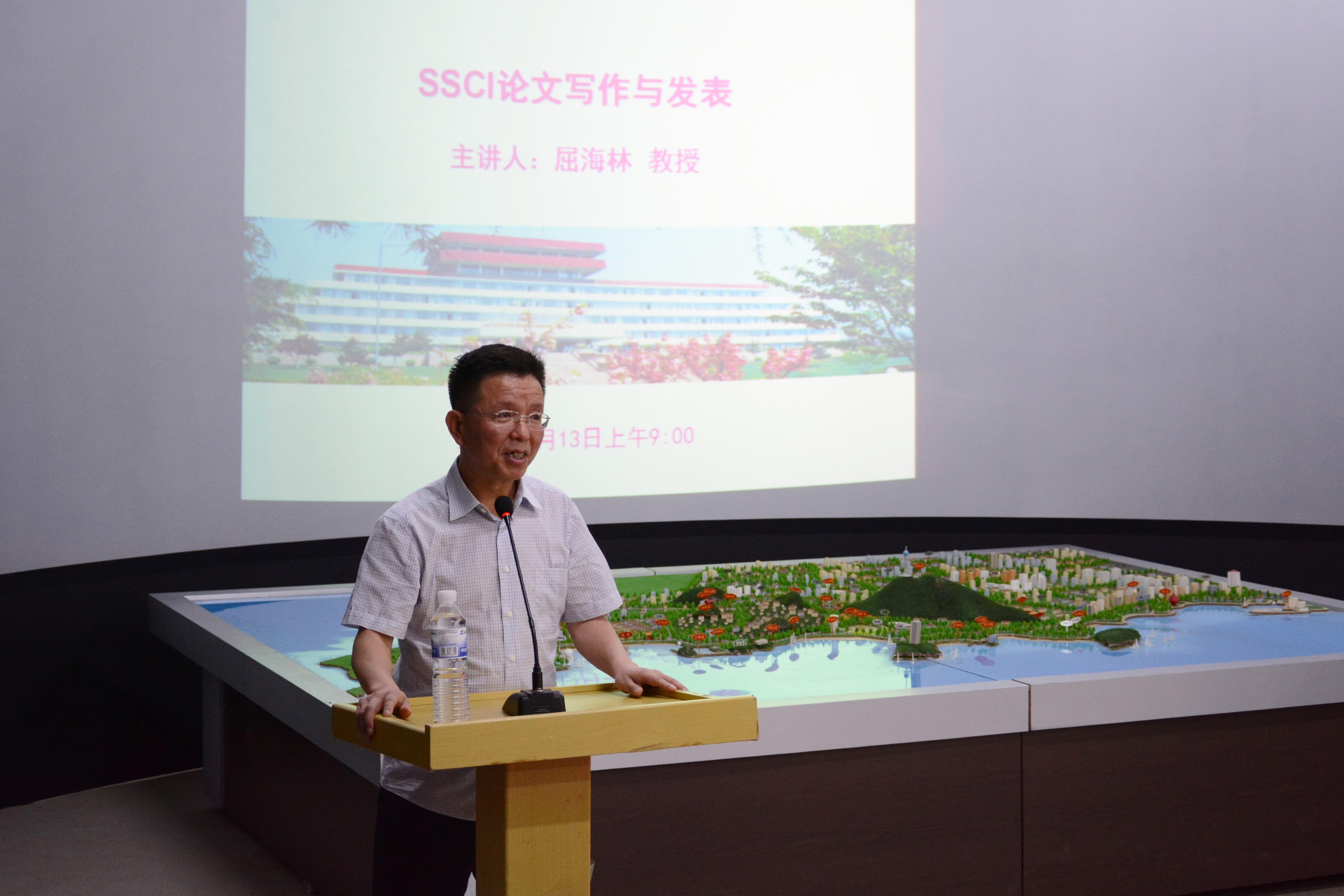 浮山校区静思楼2号旅游数字实验室举办“SSCI论文写作与发表”学术报告。本次学术报告特邀美国俄克拉荷马州立大学(Oklahoma State University)屈海林教授做学术交流报告,葵司