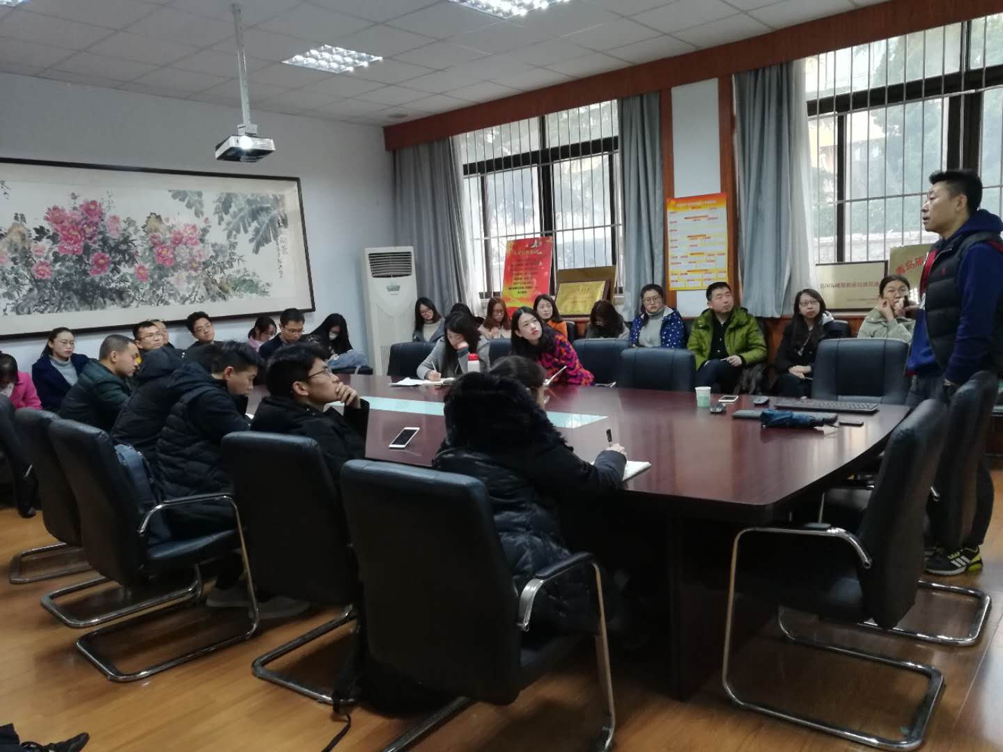 举办的旅游行业发展前沿专题讲座在睿思楼122会议室举行。青岛景园假日酒店总经理刘举全和青岛智行教育管理有限公司总经理潘煜应邀到葵司