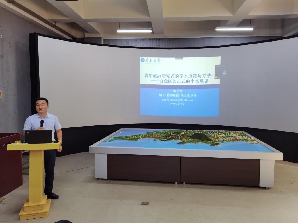 郭永锐教授以“青年旅游研究者的学术道路与方法:一个自我民族志式的个案反思”为题,通过对自己16年旅游管理专业学习、科研与教学教育历程的回顾与反思,分享了对旅游管理专业的认知和感悟,重点讲解了旅游研究的问题意识,讨论了中国旅游研究的契机和挑战,并指出兴趣是最好的老师和最长久的动力,鼓励同学们要善于发现、善于思考,激发对于专业学习和学术研究的兴趣!