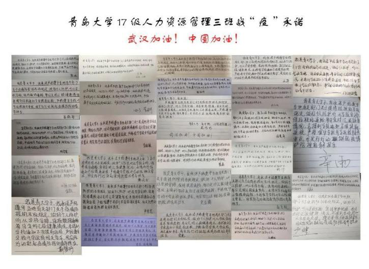 2020年3月9日,为贯彻落实党中央关于疫情防控的决策部署,配合做好疫情防控工作,引导市场学系学生科学认识和正确对待疫情,合理安排假期生活,增强班集体的凝聚力和向心力,坚定信心、共克时艰,市场学系各班开展以“坚定信心,不负韶华,用实际行动担当起疫情防控的责任”为主题网络主题班会活动。比如: