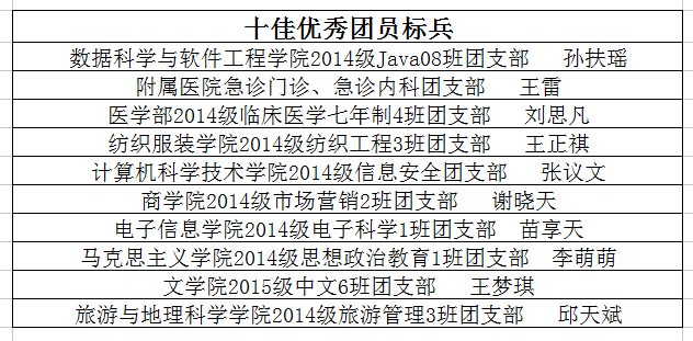 十佳五四红旗团支部和十佳团员标兵的最终名单