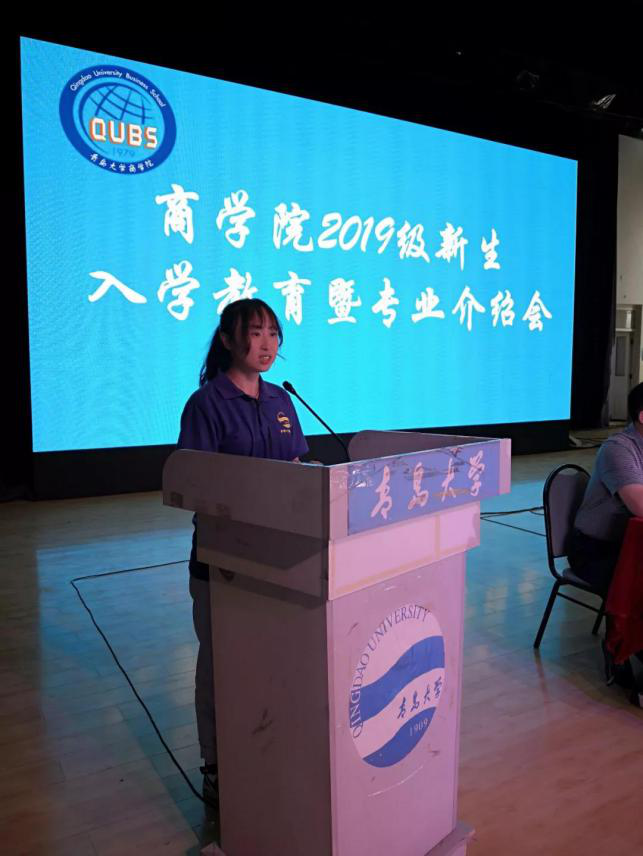 2019级新生开学典礼在金家岭校区东苑高职礼堂隆重举行,来自潍坊的19级工商管理大类11班李晨阳同学作为新生代表发言。