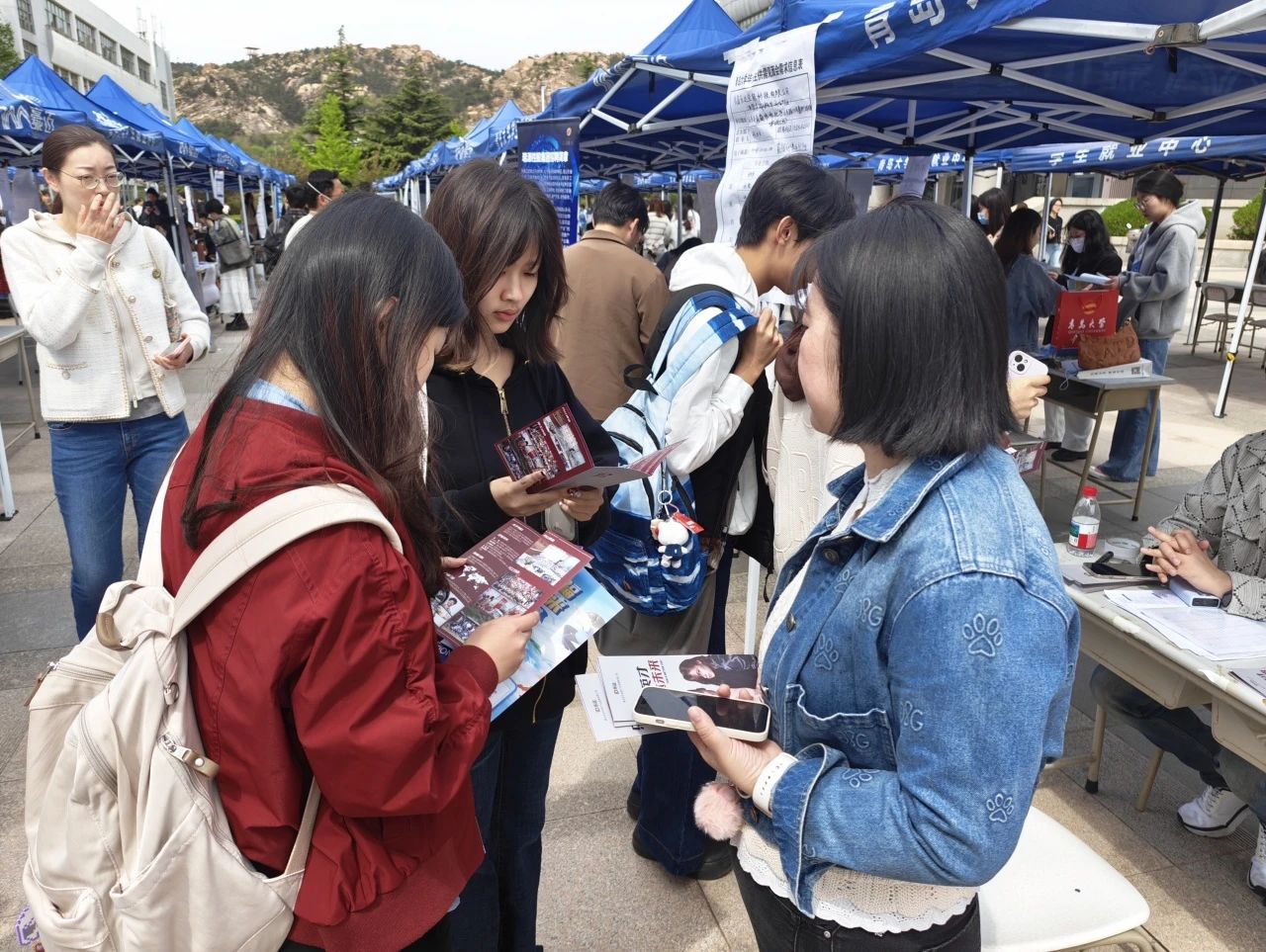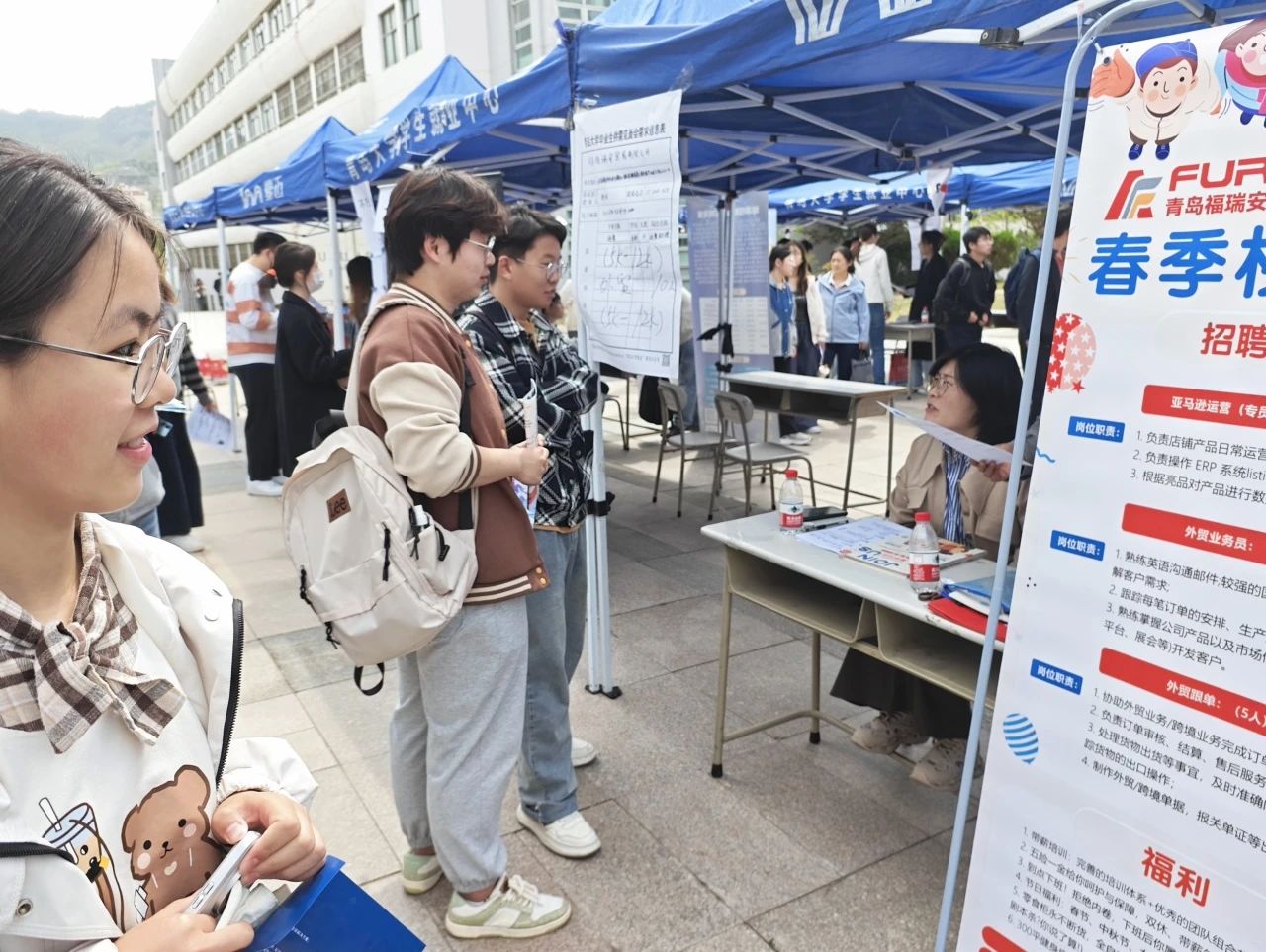 本次双选会吸引了金家岭校区500余名毕业生前来参会。招聘展位前人头攒动,翻看阅历的声音与HR的讲解声交织成一片,学生们自信展示自身优势与求职期望,就关心的问题深入咨询,现场氛围火热!