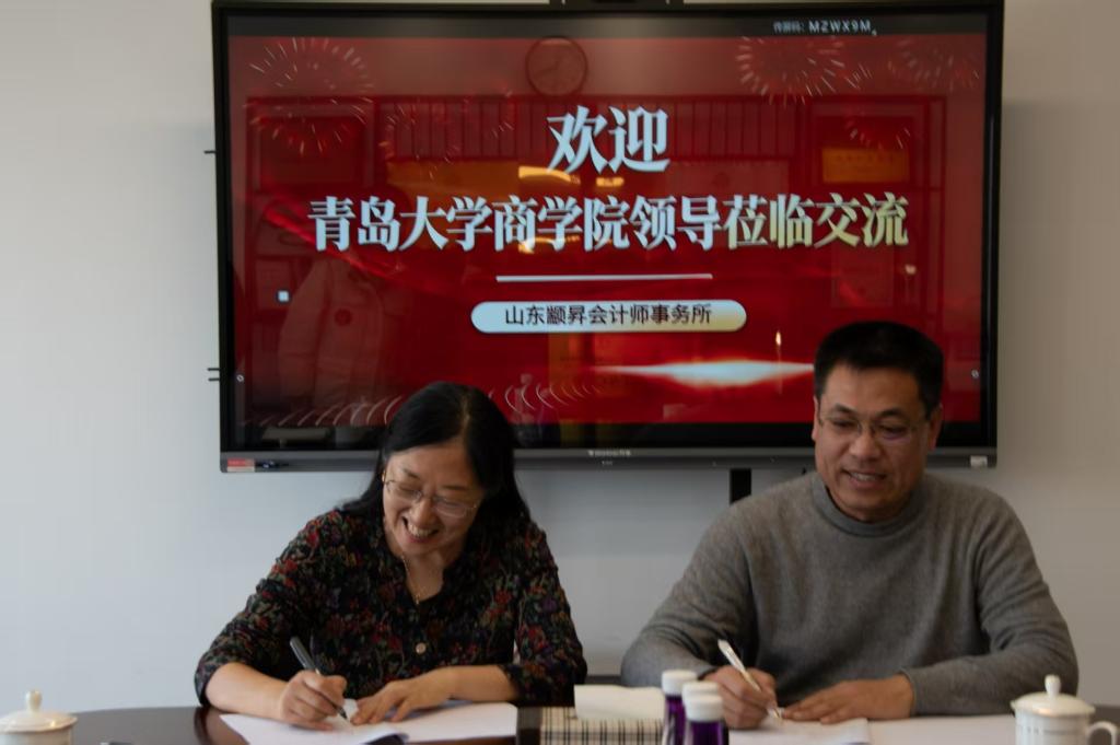 座谈结束后,校企双方共同签署合作协议并举行“青岛大学商学院教学实践基地”授牌仪式,为长期稳定合作奠定坚实基础。