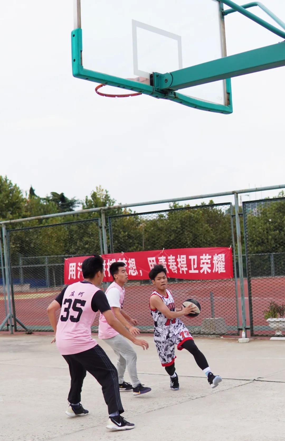 十月十日,周六,首轮进行的是来自管科与会计的比赛,伴随着阵阵喝彩声,比赛正式开始了。两队队员都激情澎湃,激情高涨,现场氛围一下被拉上了高潮,双方队员都不甘示弱,展示了各自的实力,在篮球场上留下了一个个拼搏的身影。