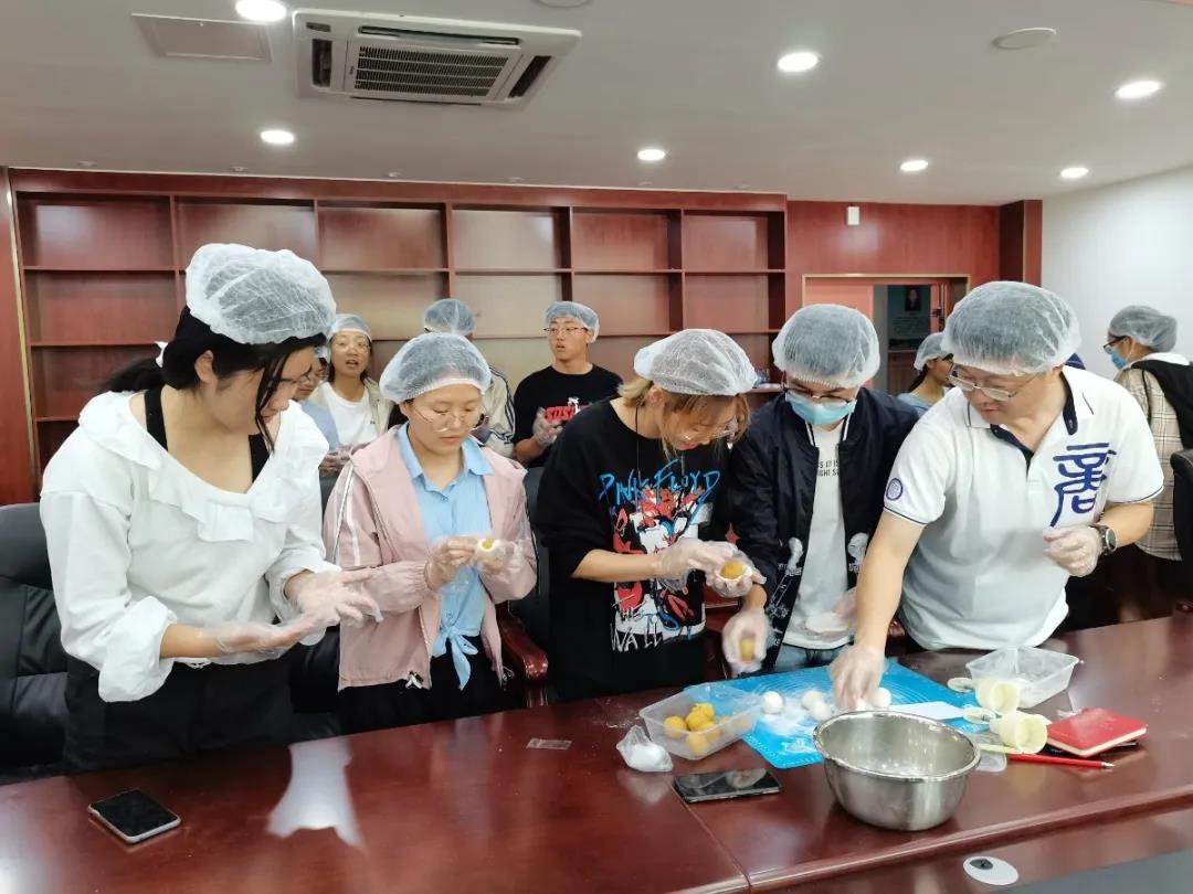 在国庆节和中秋佳节来临之际,为了更好的学习和传承文化,党员们亲手制作了象征阖家团圆的月饼。大家在专业人士的指导下,分工合作,和面、称重、压皮、包馅、按压,最后放进各种花纹的模具之中定型,每个步骤有条不紊,现场的气氛十分活跃,欢声笑语乐不停。