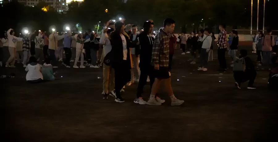 新生学子手举闪光灯