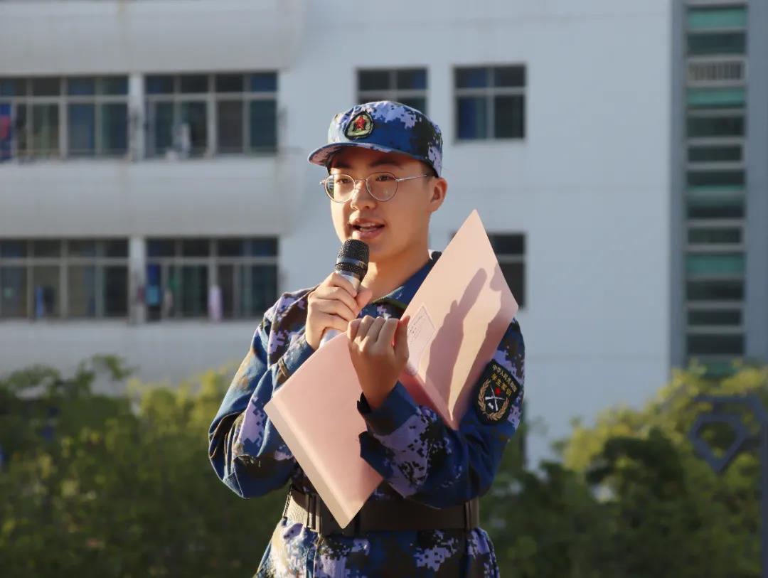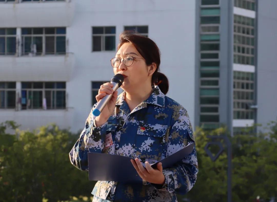 学生军训第四临时党支部书记王海荣老师为大家做国旗下讲话