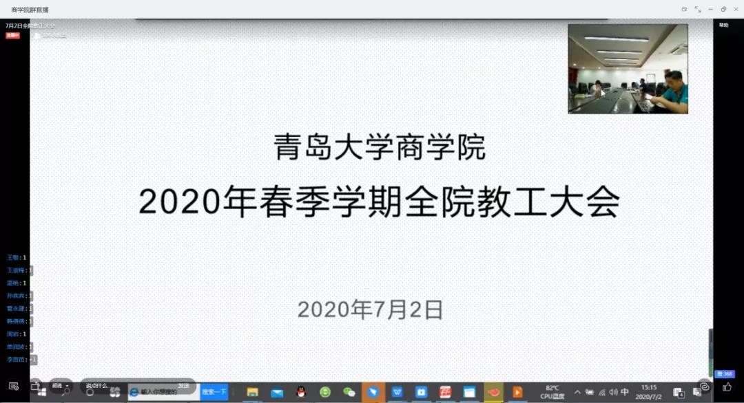 会上,王庆金院长从学院人才培养、学科工作、科学研究、教师发展四个方面总结了学院上半年工作取得的成绩。下半年的工作将重点围绕提高2021届毕业生考研率、推进本科导师制度,做好博士点申报、学科评估以及项目、论文、奖励、经费持续跟踪方面进行了全面部署。勉励全体老师共同努力,尽快把学院建成与青岛这座国际化城市相适应的管理学研究与人才培养平台。