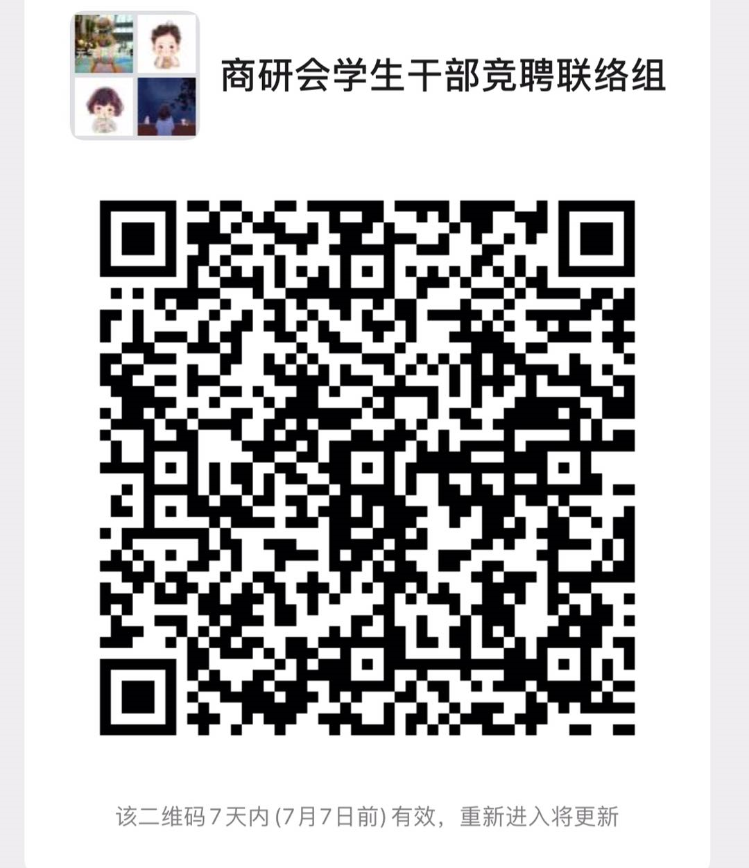 第15届研究生会学生干部竞聘表》。于7月5日16:00前发送至邮箱[email protected],发送成功后请扫描推送下方微信群二维码入群等待具体事宜通知。